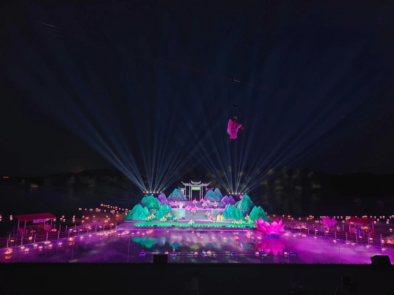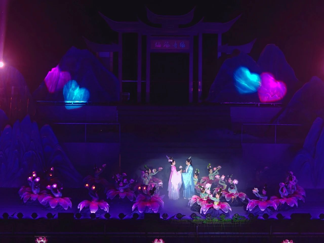 At 8 p.m. on May 1, 2025, the large-scale live-action drama "Lotus Lantern · Xianhai Romance", a key project of Sichuan University of Culture and Arts' industry-education integration, made its stunning debut at the Xianhai Landscape Theater in Mianyang. As one of the college's key industry - education integration projects for 2025, the drama, guided by the "university - enterprise - culture and tourism" collaborative talent - cultivation model, has successfully explored an innovative path of empowering local culture and achieving marketable teaching - practice outcomes through cross - disciplinary resource integration and combat - effective teaching practice, injecting strong momentum into the upgrading of the regional culture and tourism industry.